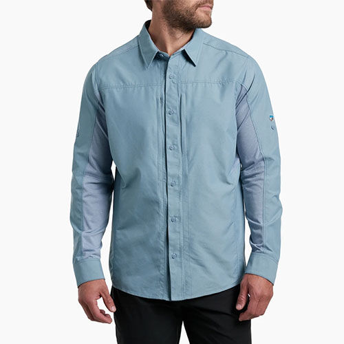 Kuhl Airspeed Men's Long Sleeve Shirt Blue Slate Zippered Front Pocket S