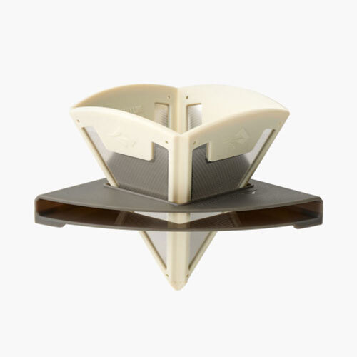 The Frontier Ultralight Collapsible Pour Over folds flat for storage in its polypropylene mount base, then pops out when needed to make a perfect pour-over brew. The easy-to-clean stainless steel mesh filter is sized just right for one serving (approx. 30g) of ground coffee and formed to hold the grounds but filter the coffee oils for a rich, satisfying cup of coffee.